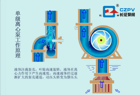 單級離心泵主要適用于工農業及城市、排水、消防供水等。該泵的傳動方式是通過加長彈性聯軸器與電動機聯接的。泵的旋轉方向,從驅動端看,為順時針方向旋轉。以下著重介紹下單級離心泵的工作原理。