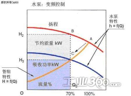 ②由于某些大型循環(huán)水泵的規(guī)劃參數(shù)而被適應(yīng)于某些循環(huán)水泵系統(tǒng),即所謂的“大馬拉小車”,它在這種情況下具有一定的作用,依賴于泵的頻率來(lái)改變泵馬達(dá)的頻率降低泵的轉(zhuǎn)速,調(diào)整泵的Q和H值,并使泵的實(shí)際流量值低于泵的額外流量值,以達(dá)到節(jié)能的目的。
